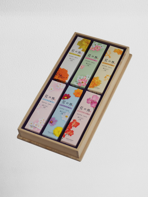 「花の組曲・6種アソート」は、季節に合わせた洋花の香りを詰め合わせた特別なお線香。