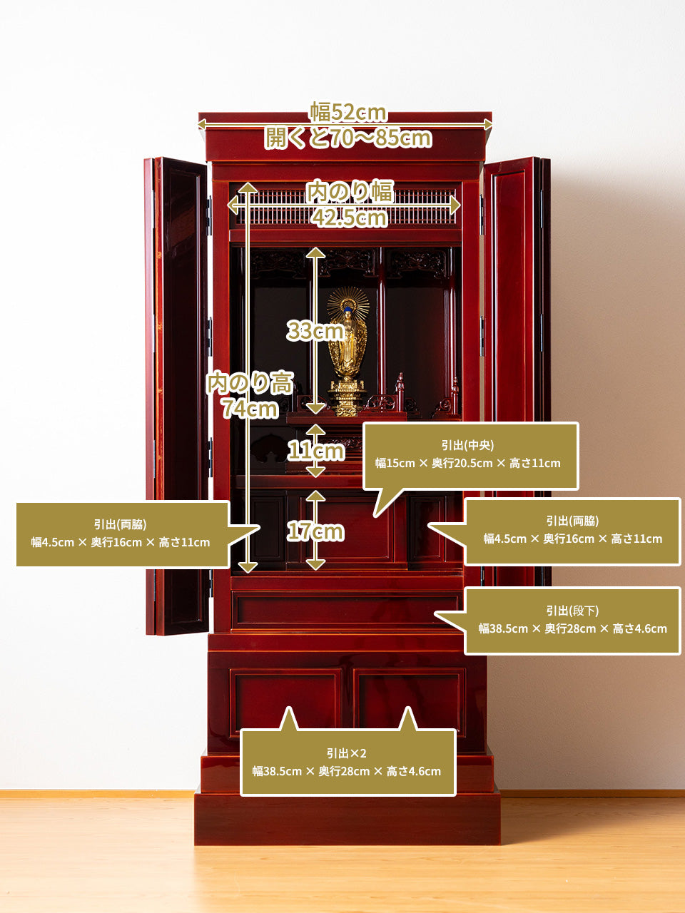 お参りしやすいこのサイズは、仏間や寝室におすすめです。
