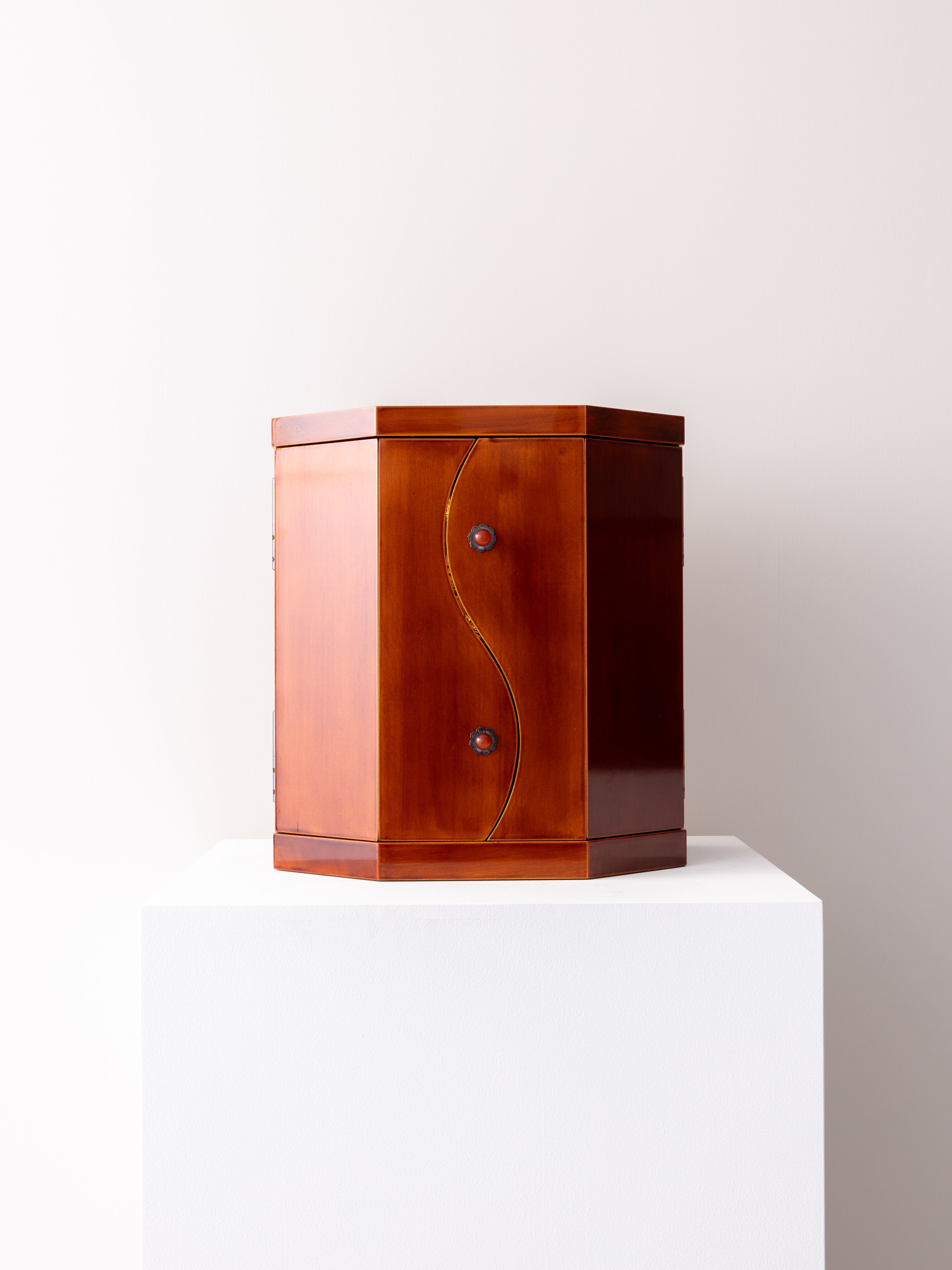 伝統工芸・飛騨春慶の小さなお仏壇に、土のカリスマとして名高い、左官・挟土秀平の左官壁を融合させた特別な一台です。