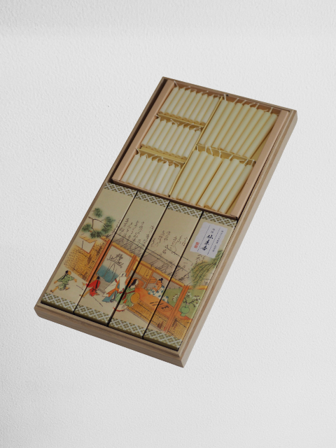内容量:線香四箱 蜜入りローソク(小)24本、(大)16本